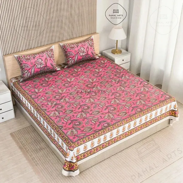 PahalArts Cotton Double Flat 144 TC Jaipuri Prints Bedsheet