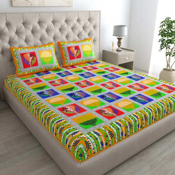 Cosito Cotton Double Flat 144 TC Jaipuri Prints Bedsheet